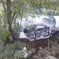 Carro fica destruído e passageiros saem ilesos