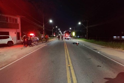 O acidente ocorreu na madrugada deste sábado (07) na SC-434, em Garopaba, no Sul de Santa Catarina. A vítima, um idoso de 60 anos, conduzia uma bicicleta elétrica quando foi atingido por uma motocicleta.