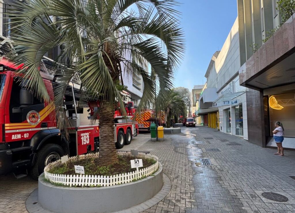 Segundo os bombeiros, o atendimento contou com diversas viaturas e enfrentou dificuldades de acesso por conta da presença de canteiros no calçadão e à necessidade de poda de árvores, o que dificultou a chegada e saída dos caminhões.