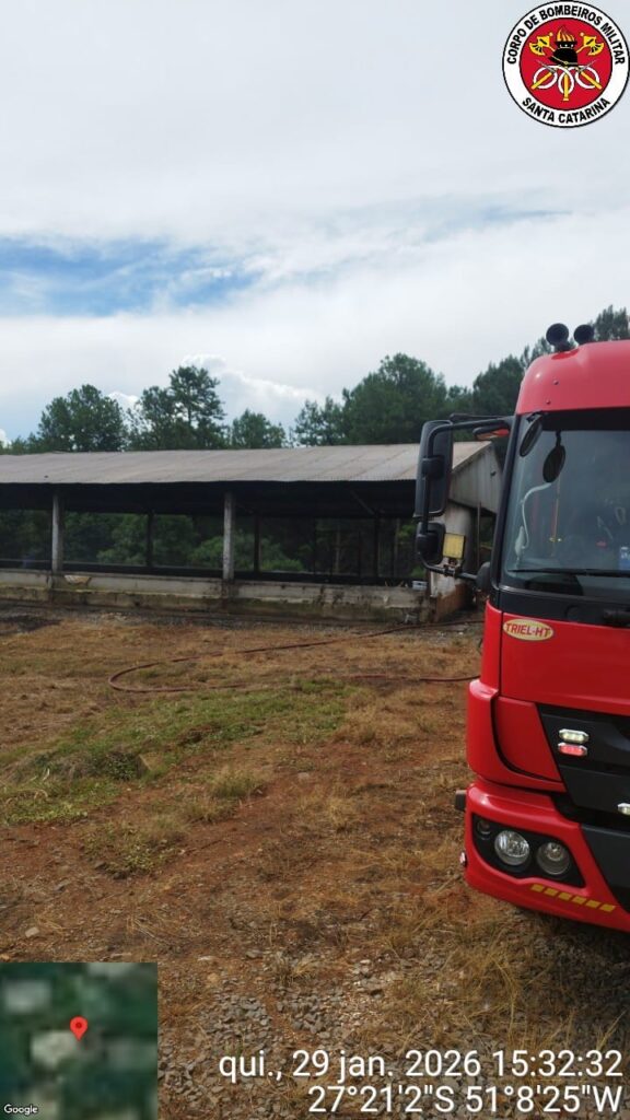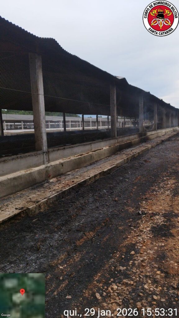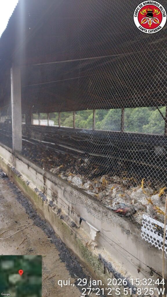 Aproximadamente sete mil galinhas morreram após um incêndio atingir um aviário na tarde desta quinta-feira (29) em Campos Novos, na Serra catarinense. A ocorrência foi atendida pelo Corpo de Bombeiros Militar (CBMSC).