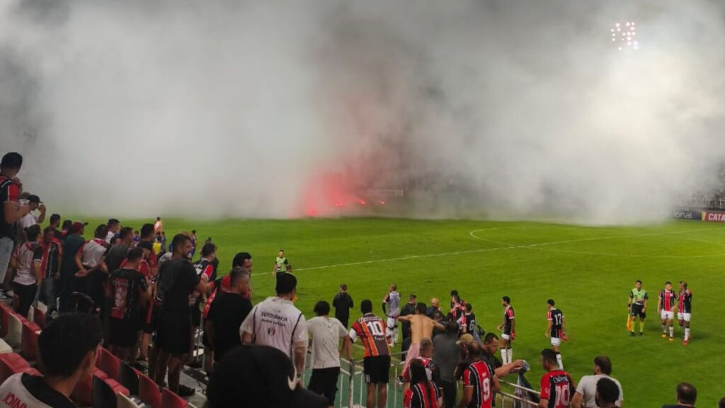 A confusão ocorreu na noite da última terça-feira, no jogo que terminou com a derrota do Joinville por 4×2 contra o Marcílio Dias na estreia do “quadrangular da morte”. A situação foi registrada aos 29 minutos do segundo tempo. Naquela altura, o JEC já perdia por 3×2 e amargava a quarta derrota consecutiva no Campeonato Catarinense de 2026. Insatisfeitos com mais uma partida ruim do time, torcedores acenderam sinalizadores e começaram a jogá-los no gramado. O juiz paralisou a partida, que só foi reiniciada 52 minutos depois. Após a volta, o time ainda sofreu o quarto gol.