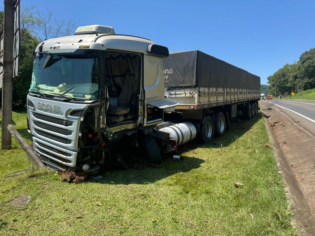 Já o condutor do caminhão, que carregava uma carga de aproximadamente 30 toneladas de soja, não se feriu. Ele relatou à Polícia Rodoviária Estadual que não conseguiu frear após o acidente e só parou após sair da pista se chocar contra um poste. Por conta da batida, o veículo ficou bastante danificado, perdendo a porta do lado do motorista.