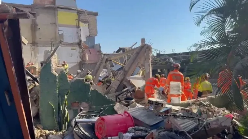 A estrutura de quatro pavimentos desmoronou durante a madrugada e até o momento seis pessoas foram resgatadas com vida