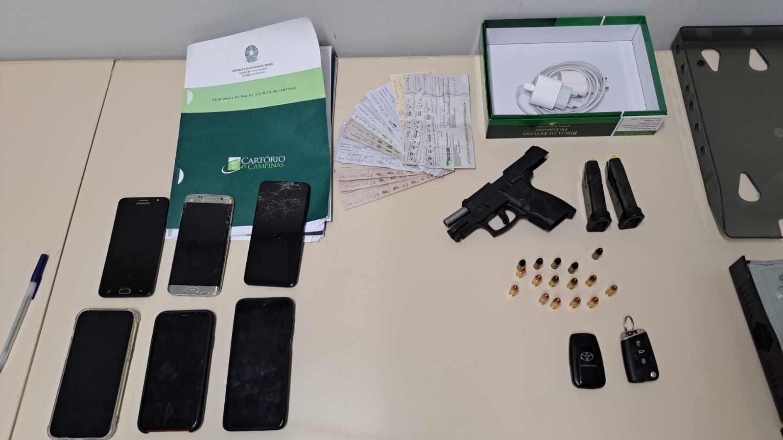 Durante as buscas, o alvo foi preso em flagrante delito pelo crime de posse ilegal de arma de fogo de uso restrito (pistola e munições 9 x 19mm). Também foram apreendidos em sua residência aparelhos celulares e documentos. Ainda de acordo com a Polícia Civil, os materiais evidenciariam alto padrão de vida do investigado. Outros aparelhos celulares também foram apreendidos em outro endereço.