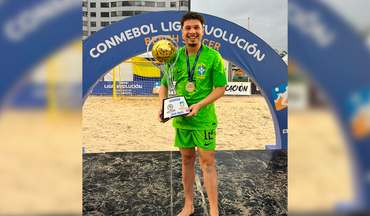 O manezinho Marllon Santos, natural da Barra da Lagoa, é campeão com a seleção brasileira sub-20 de beach soccer. O goleiro já havia feito história ao ser o primeiro catarinense a ser convocado para defender a “amarelinha”. Neste domingo (12), ele escreveu mais um capítulo na história ao participar do título da Zona Norte da Conmembol Liga Evolución, competição disputada na Arena Beira-Rio, em Itajaí, no Litoral Norte. Na final da competição sul-americana, o Brasil venceu a Colômbia por 3×2 e sagrou-se campeão.