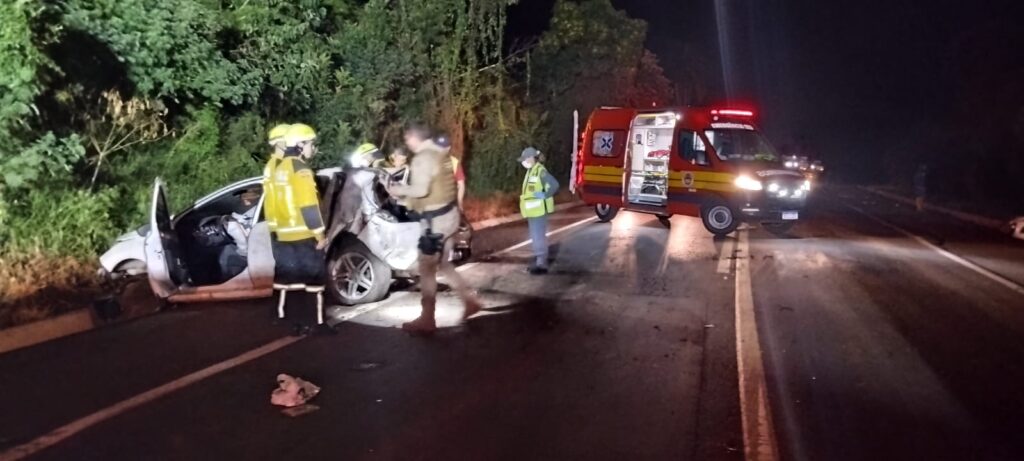 Motorista capota carro na BR-282 em grave acidente nesta madrugada