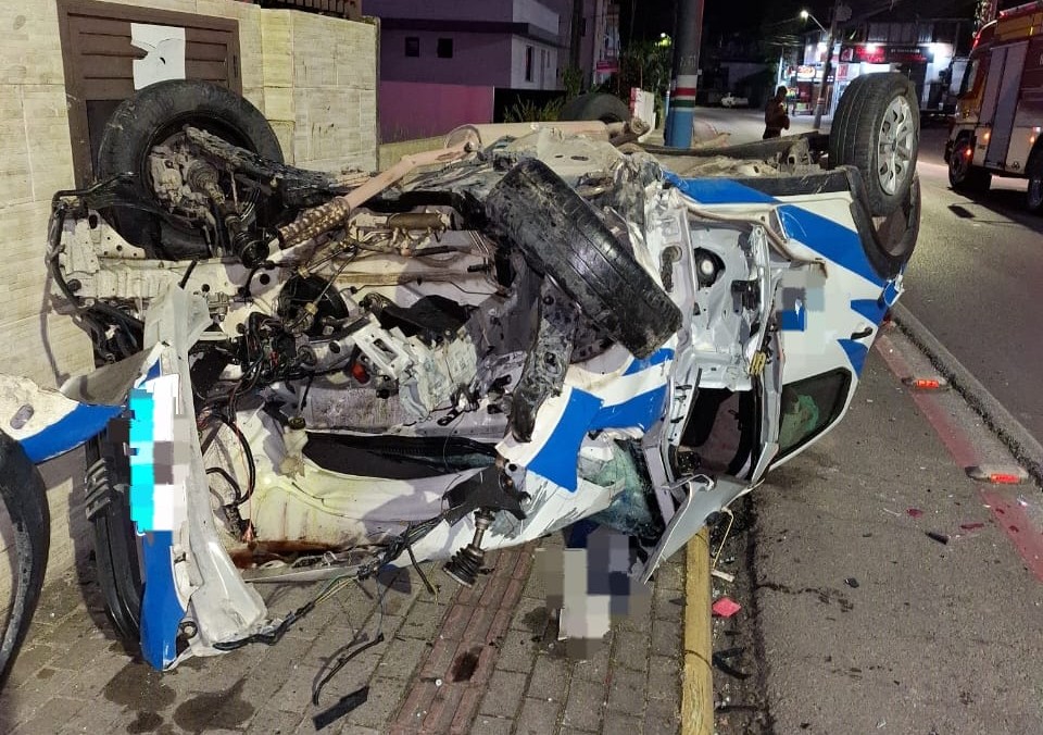 A situação foi registrada pela PMSC e a suspeita é de que que o acidente foi provocado pelo excesso de velocidade. Como o motorista fugiu do local não foi possível constatar que ele estava sob o efeito de bebidas alcoólicas.