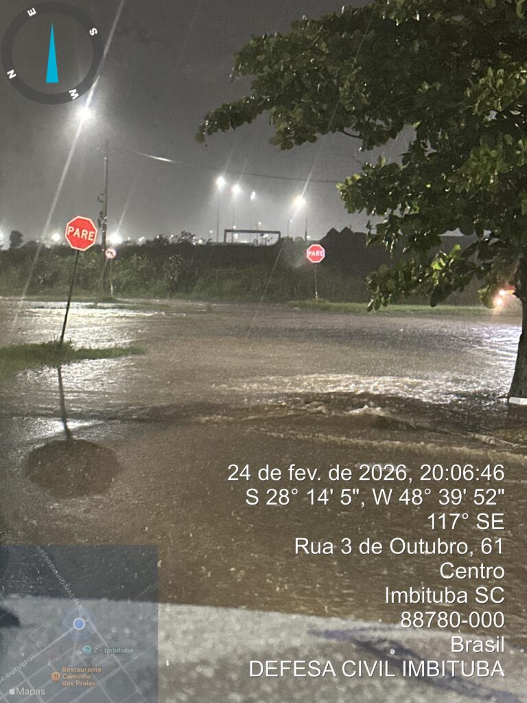 Segundo a Prefeitura de Imbituba, foi registrado um acumulado de 90 milímetros de chuva em poucas horas na noite de terça-feira – volume esperado para todo o mês de fevereiro –, o que causou transtornos pontuais em diferentes regiões do município. Os principais impactos registrados foram alagamentos em residências, sem a necessidade de retirada de famílias; rompimento de vias de estrada de chão, especialmente na região norte; e obstruções em pontos da malha viária.