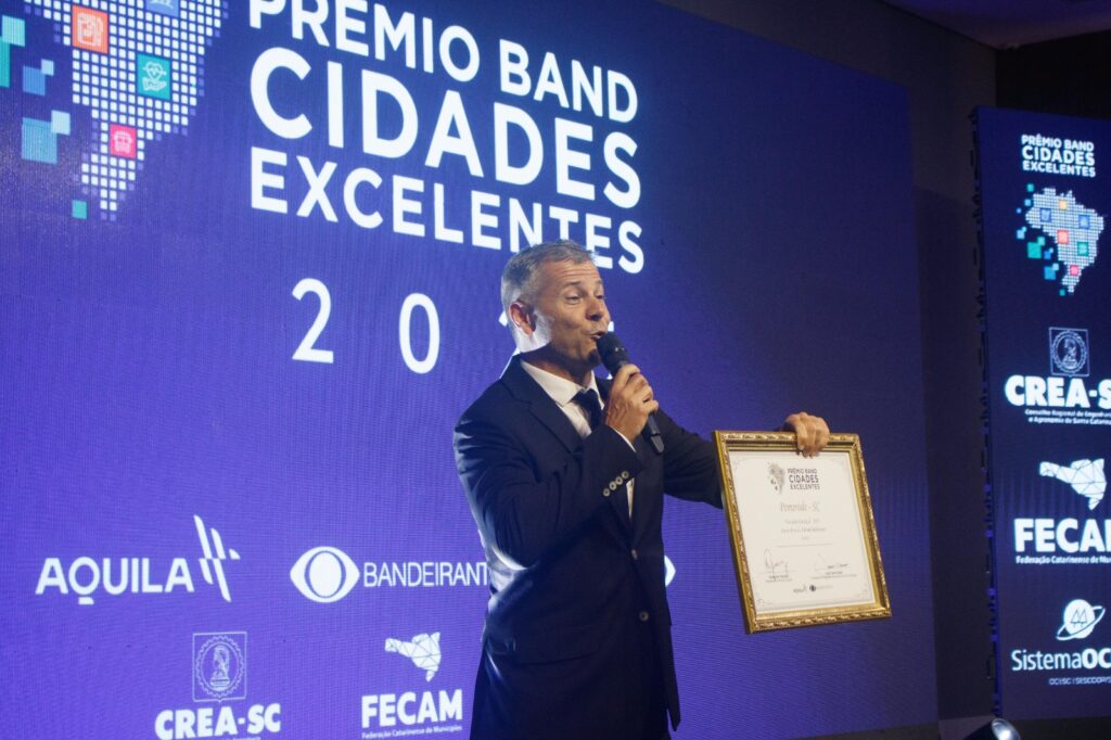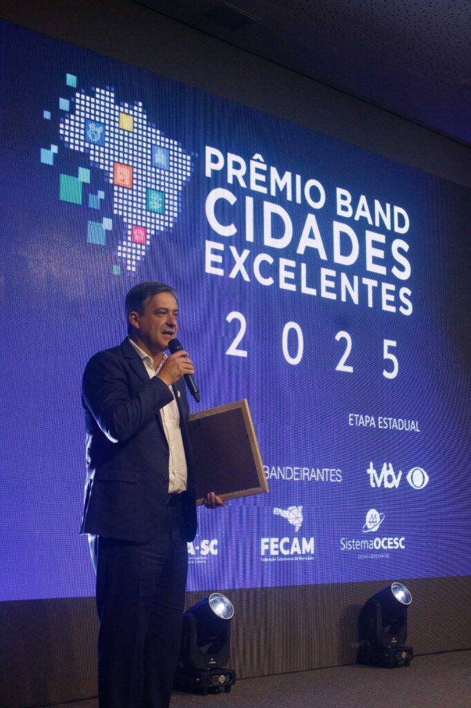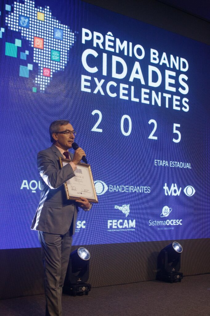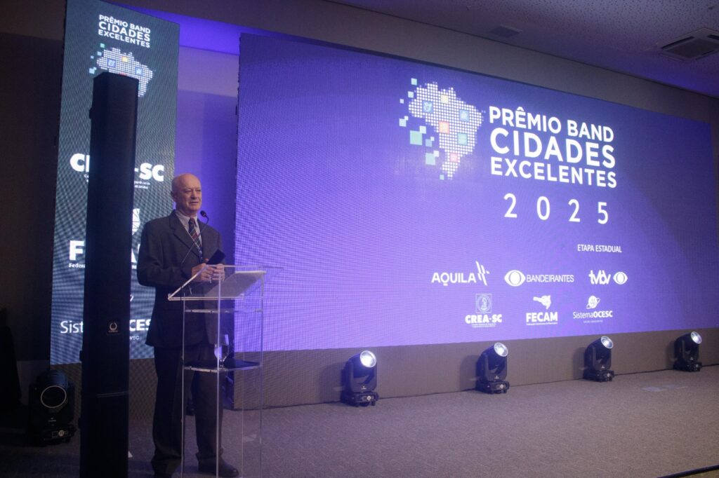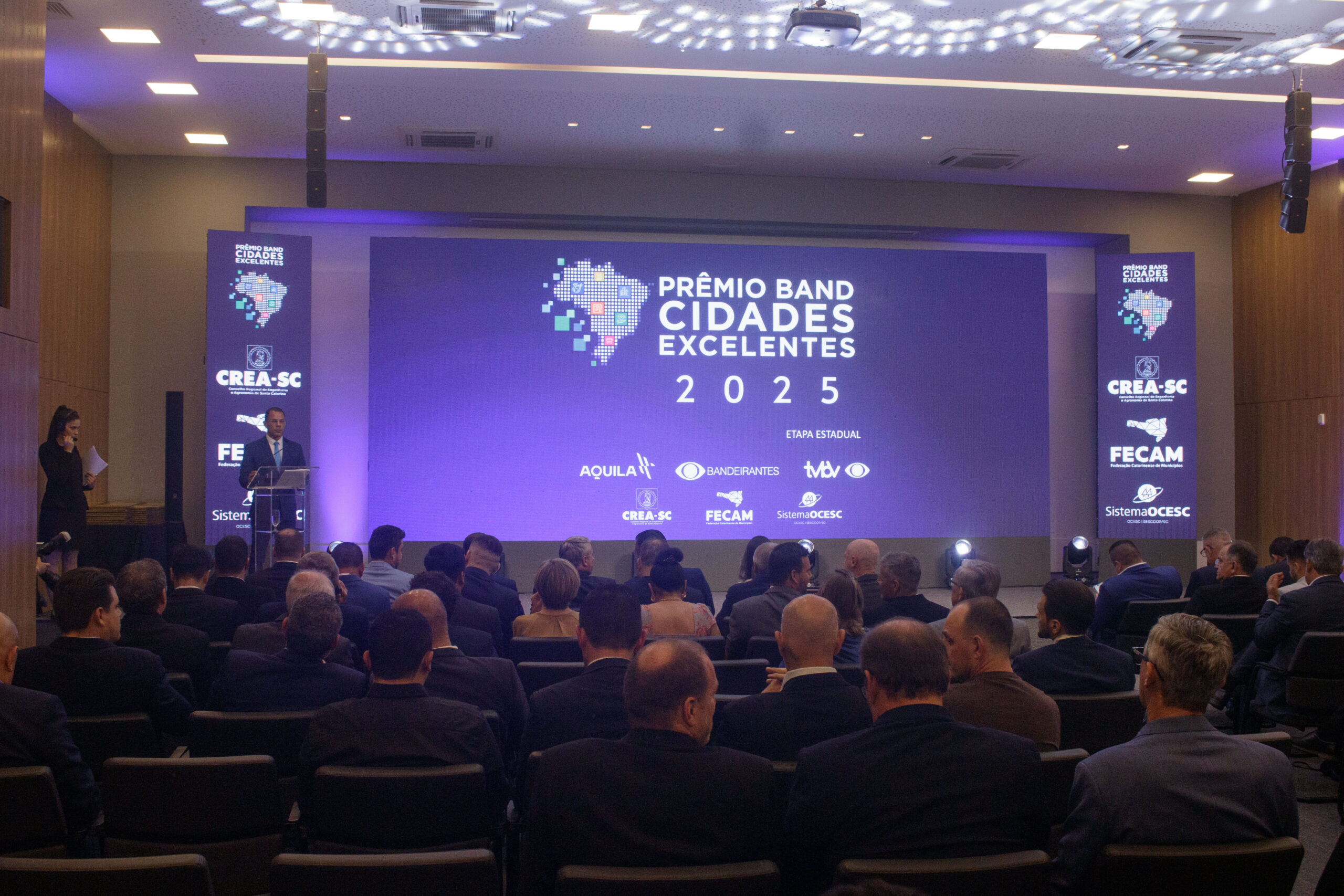 Santa Catarina conheceu nesta terça-feira (18) os municípios campeões em práticas de gestão pública para melhorar os serviços prestados aos cidadãos na edição 2025 do Prêmio Band Cidades Excelentes. A cerimônia da etapa estadual ocorreu no Square SC em Florianópolis, e reuniu representantes de governos municipais e da Federação Catarinense de Municípios (FECAM).
