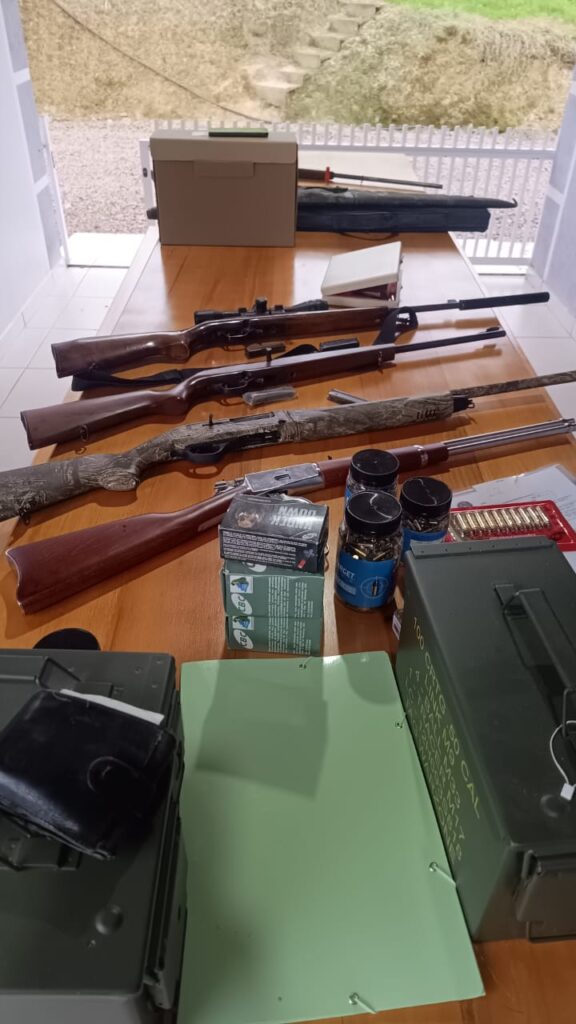 A operação foi realizada na manhã desta quarta-feira (05) em nove cidades catarinenses contra a caça ilegal de animais silvestres. Foram cumpridos 18 mandados de busca e apreensão contra 16 suspeitos que divulgavam a prática da atividade. As ações ocorreram de forma simultânea nas cidades de Blumenau, Pomerode, Indaial, Rio dos Cedros, Corupá, Ibirama, Rio Negrinho, Lontras e Laurentino. Seis pessoas foram presas em flagrante por porte ilegal de arma de fogo.