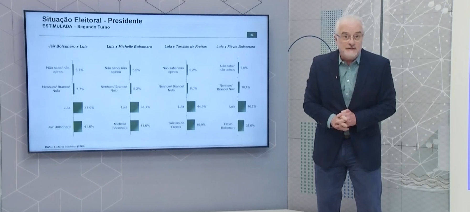 O resultado mostrou Lula como o favorito no primeiro turno contra todos os candidatos, incluindo Jair Bolsonaro, Michelle Bolsonaro e Tarcísio de Freitas. Já no segundo turno, onde a vitória importa de fato, o presidente aparece em um cenário de empate técnico com o casal Bolsonaro e levemente a frente de Tarcísio. Esse cenário deve preocupar o presidente e pré-candidato à reeleição. Isso porque ele, com o tempo a frente do poder e com os holofotes, deveria ter uma margem maior.