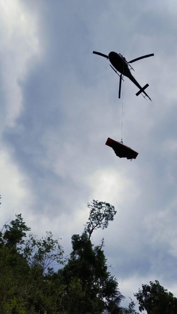Agentes precisaram ser resgatados de helicóptero em local de difícil acesso