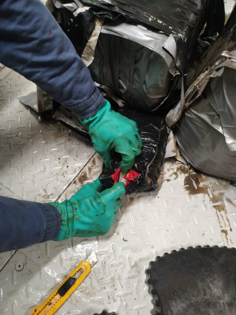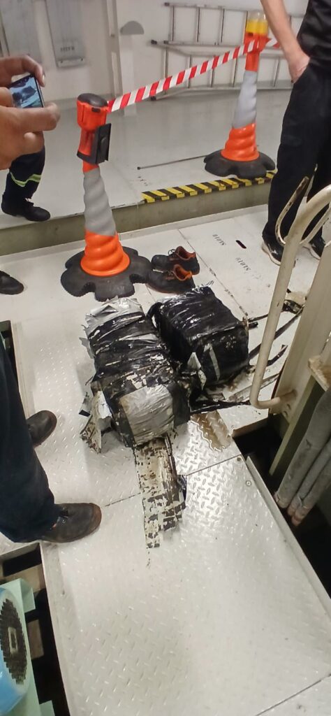 De acordo com a PF, a droga foi encontrada após a identificação de material suspeito no casco da tubulação de refrigeração. O material foi retirado e passou por testes preliminares que indicaram tratar-se de cocaína. Buscas subaquáticas também foram realizadas na tentativa encontrar mais drogas ocultas no navio.