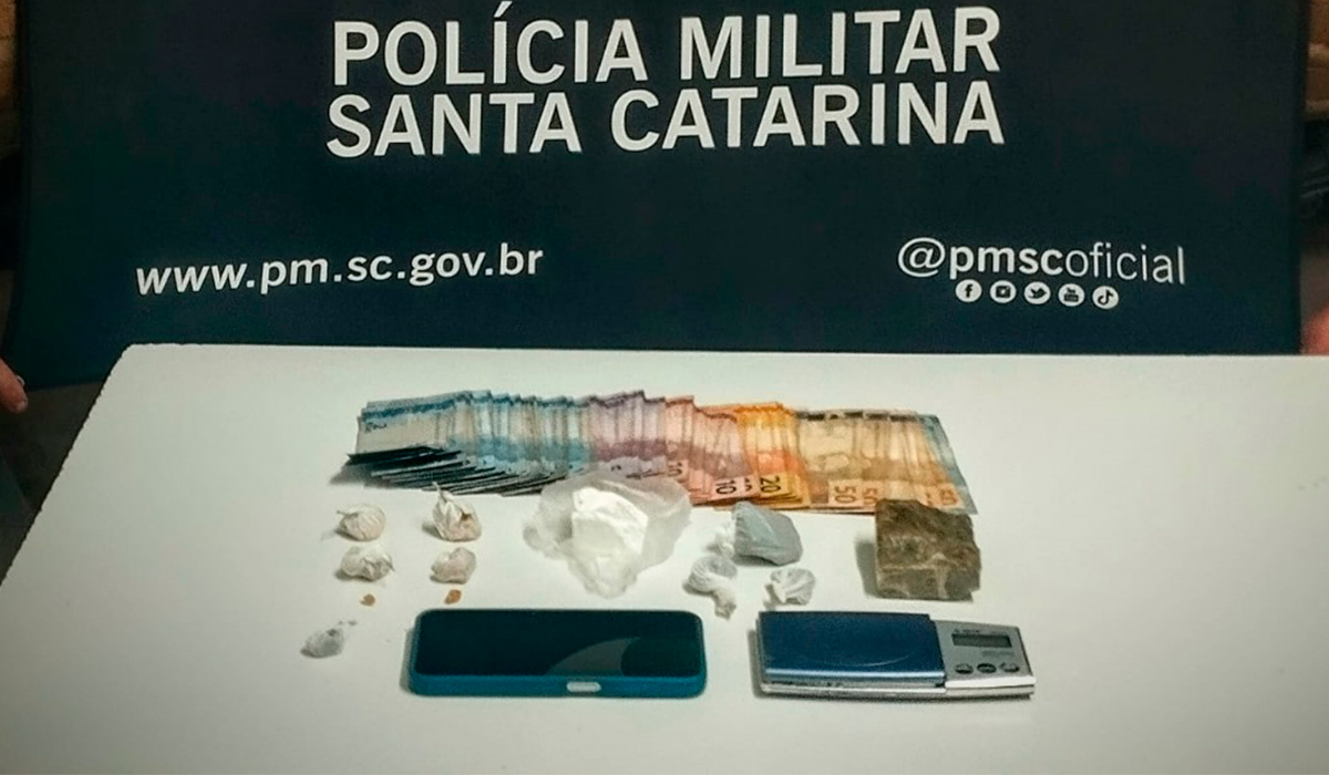 PMSC apreendeu ainda porções de 3 drogas diferentes e quantias em dinheiro