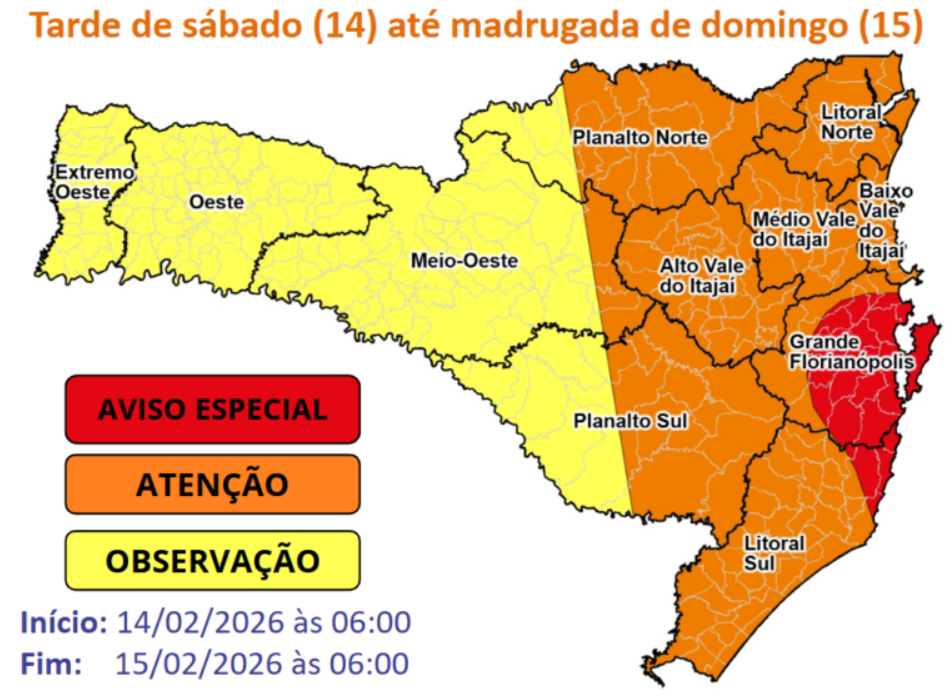 Alerta para temporais. Imagem: Defesa Civil de Santa Catarina