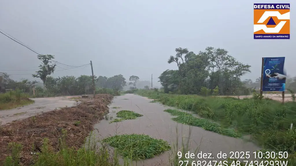 O município de Santo Amaro da Imperatriz, na Grande Florianópolis, decretou situação de emergência na tarde desta quarta-feira (10) em razão das fortes chuvas registradas nesta terça (9). A cidade foi a que registrou maior precipitação dentre todas as catarinenses, com 146 mm em apenas 6 horas, mais do que a esperada para o mês inteiro. Em 24h, foram 152.8 mm. O acumulado causou danos à infraestrutura do município. Não houve desabrigados.