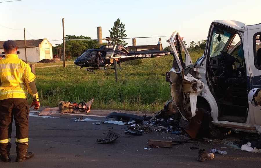 Já o motorista da van, de 50 anos, que também ficou preso às ferragens, teve fratura exposta na perna direita e foi levado pela equipe do SAER. Os feridos mais graves foram encaminhados para o Hospital São Roque. Outras duas pessoas que estavam no veículo receberam atendimento da unidade básica do SAMU e foram encaminhadas para avaliação médica. As causas da colisão ainda serão apuradas. A ocorrência contou com a ação de equipes do Corpo de Bombeiros Militar, Bombeiros Voluntários de Jaguaruna, SAMU e o SAER.