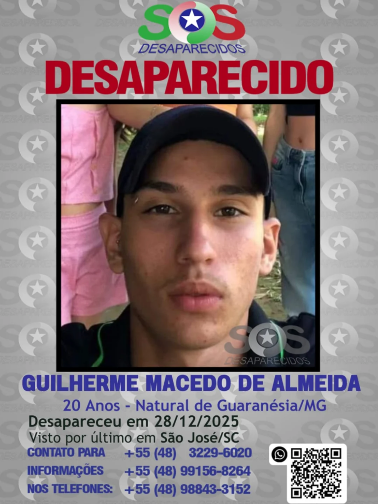 Quatro jovens estão desaparecidos desde a madrugada de domingo (28) em São José, na Grande Florianópolis. Eles se mudaram de Minas Gerais para a cidade para trabalhar em um restaurante e foram vistos pela última vez em frente ao condomínio onde moravam juntos, em Barreiros. A Polícia Militar (PMSC) trabalha para encontrar pistas sobre o desaparecimento.