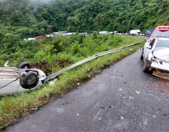 Mulher fica em estado grave após colisão e capotamento na Serra da Santa