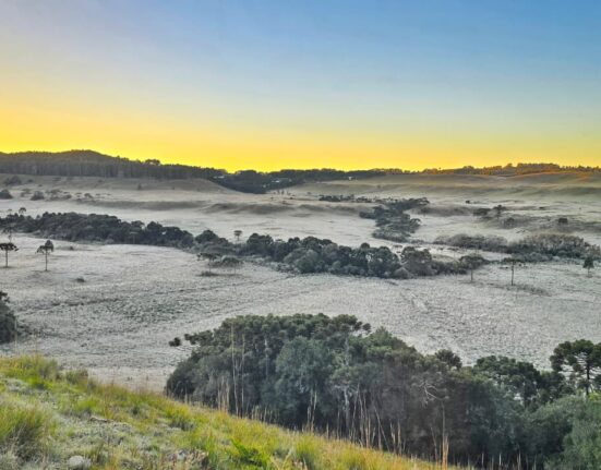 Na sexta-feira (24), ainda há chance de chuva pelo estado, principalmente entre o Oeste e o Norte. Os acumulados tendem a ser menos expressivos em comparação a esta quinta, e devem variar entre 20 e 40 mm nas áreas de divisa com o Paraná e entre 10 e 25 mm nas demais regiões.