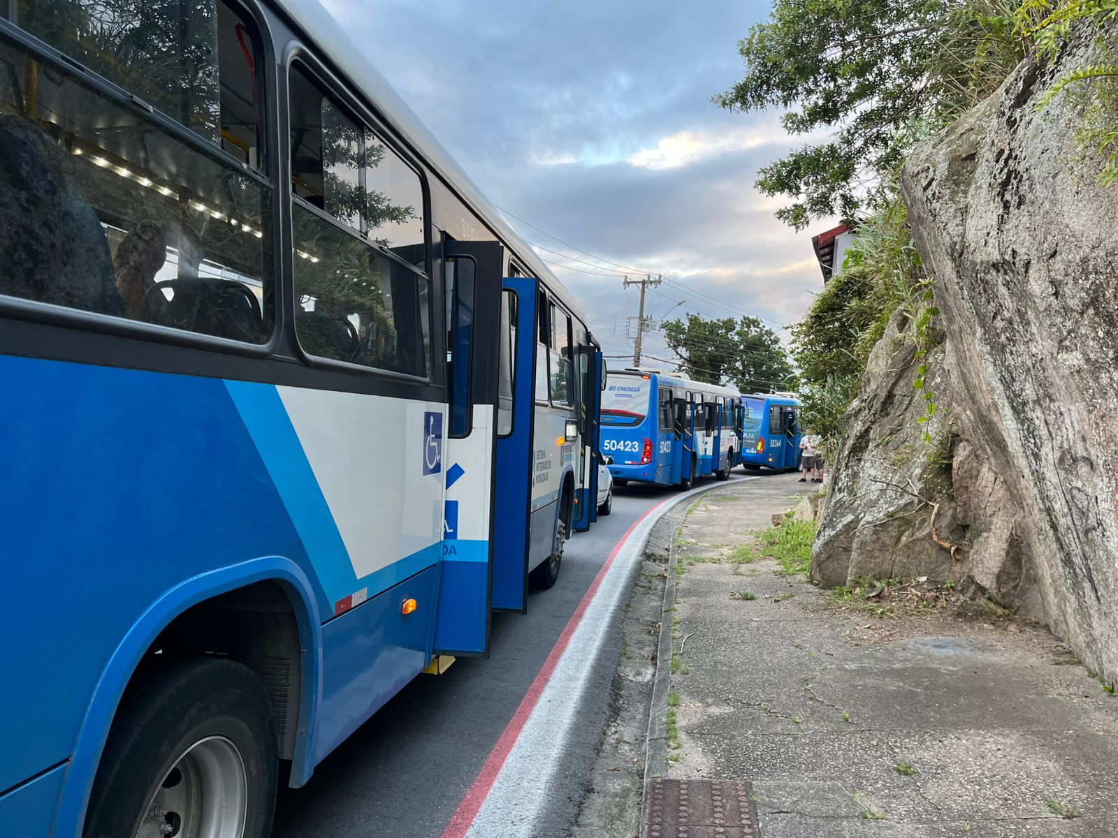 O trânsito de veículos na Rua José Maria da Luz, no bairro José Mendes, na região central de Florianópolis, ficou parcialmente bloqueado fim de tarde desta sexta-feira (27) por alguns minutos. A formação da fila se deve a um tiroteio na região do Morro do Mocotó, que fica a cima do Túnel Antonieta de Barros. Segundo informações preliminares, a situação ficou bastante violenta por lá, tanto é que os ônibus não avançavam por conta do risco iminente.