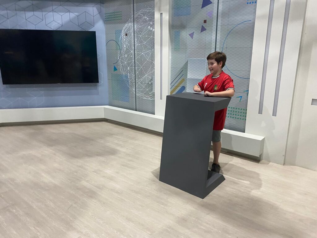 O pequeno Lucas Colombo Wojcikiewicz, de 9 anos e portador do espectro autista, conheceu ao lado da mãe e das irmãs os veículos de comunicação que compõem o Grupo