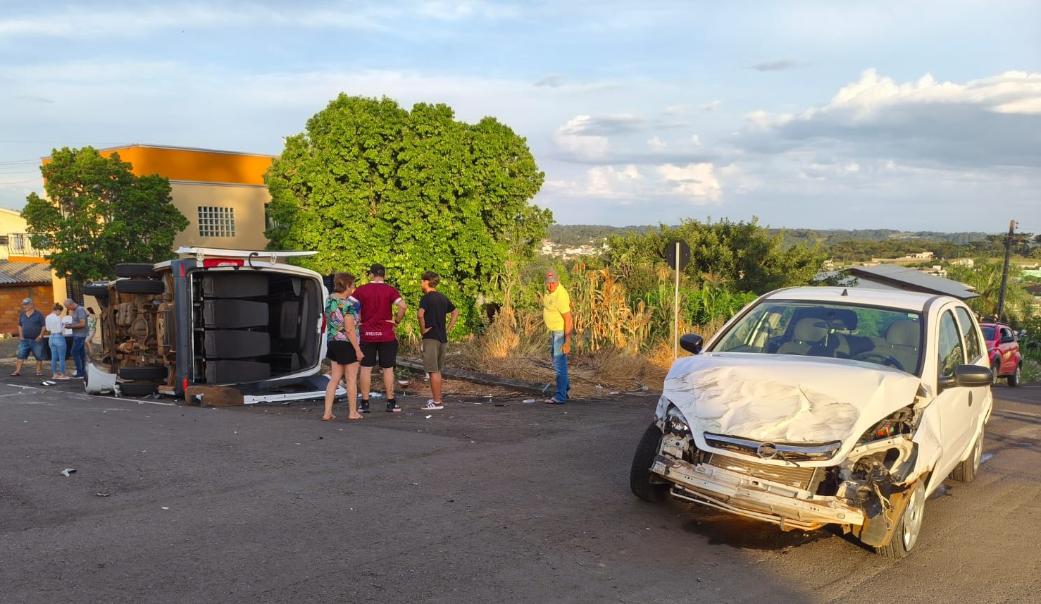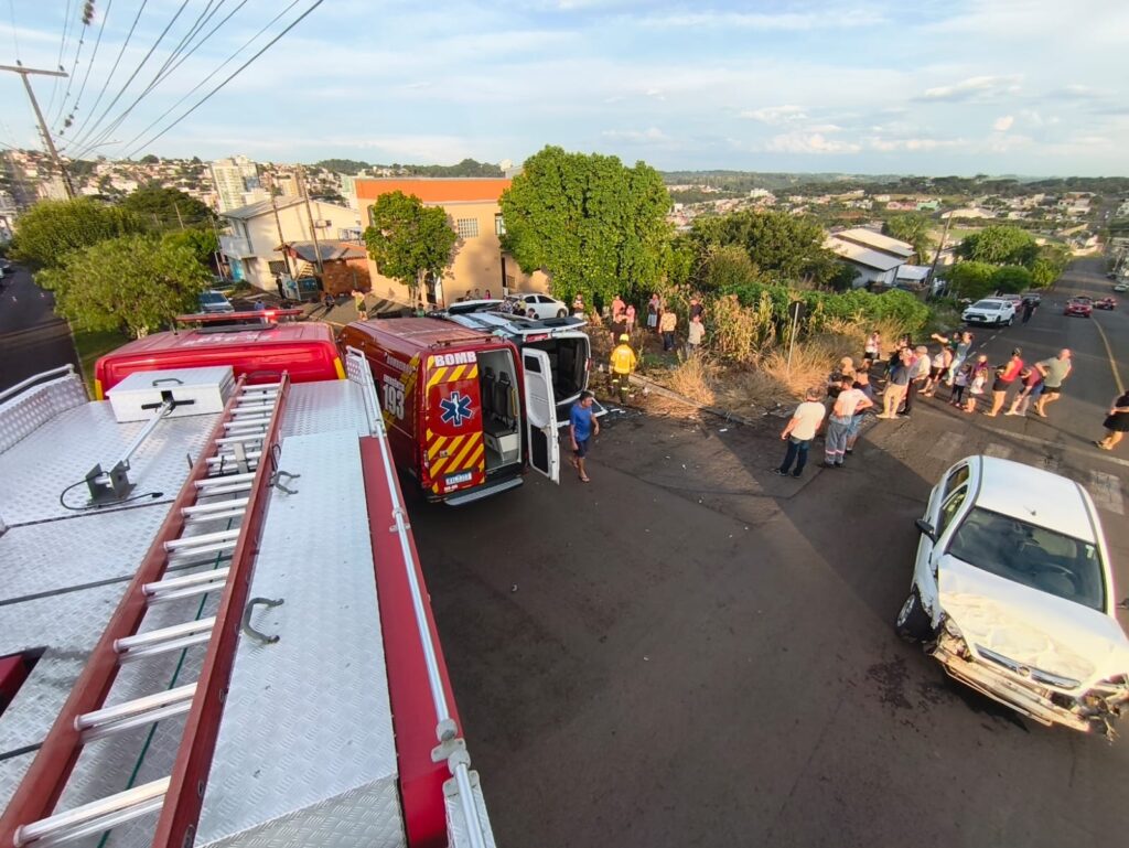 Um grave acidente de trânsito envolvendo um carro e uma van escolar foi registrado no fim da tarde de segunda-feira (30), no bairro Guarani, em Xaxim, no Oeste de Santa Catarina. Por volta das 17h20 o Corpo de Bombeiros Militar (CBMSC) foi ao local e, de acordo com a equipe, seis pessoas estavam envolvidas na colisão, duas no carro e quatro na van escolar. No veículo de transporte escolar, estavam o motorista, uma monitora e duas crianças.