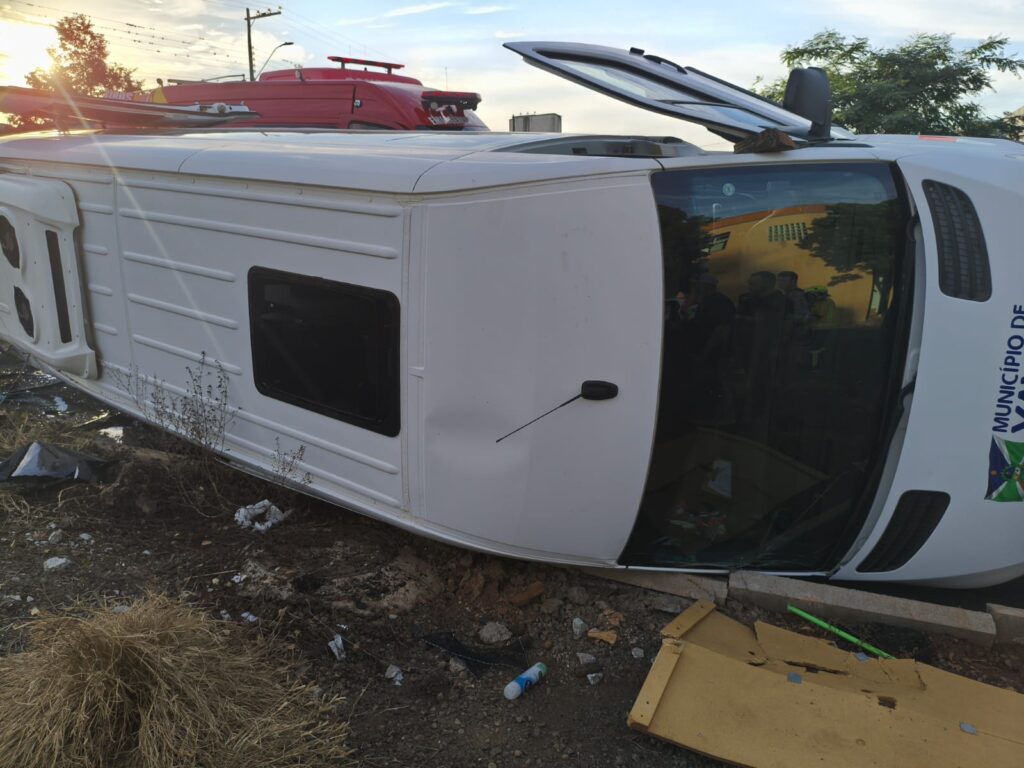 A monitora da van foi encontrada dentro do veículo, que estava tombado de lado, consciente e orientada, mas com dores nas costelas e no braço, além de relatar um formigamento no corpo. Ela precisou de atendimento pré-hospitalar e após estabilização e imobilização, a vítima foi retirada do veículo com técnicas de resgate e encaminhada ao Hospital Frei Bruno para avaliação médica.