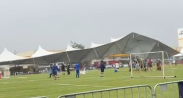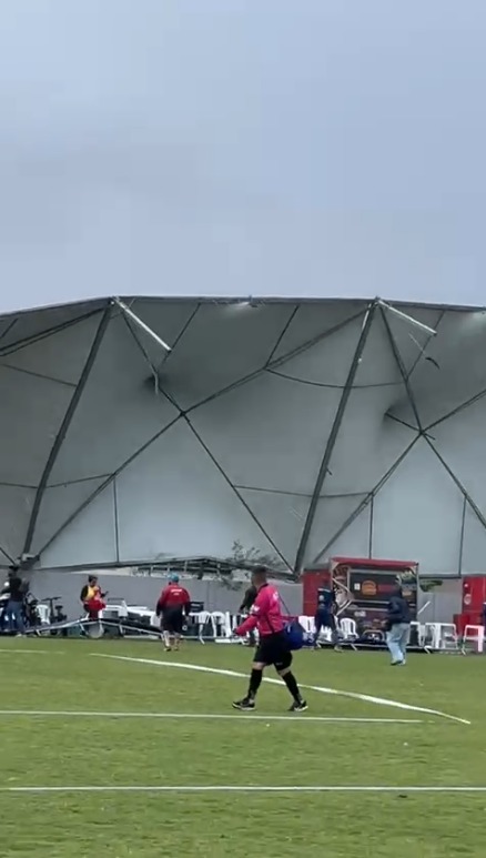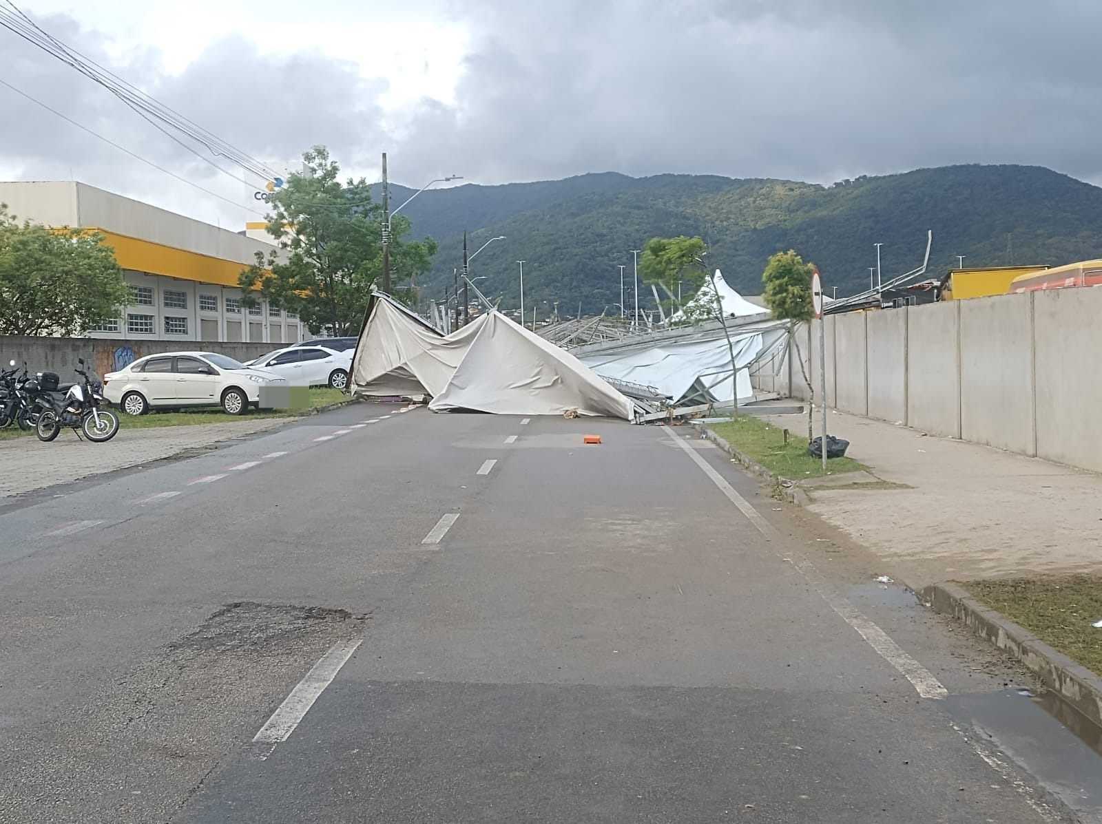 Na Ressacada, que recebe neste domingo (19) a partida entre Avaí e Criciúma na Série B do Campeonato Brasileiro, uma estrutura de tendas foi içada pela força dos ventos e arremessada sobre a Rua Saul Oliveira. No local, uma pessoa sofreu escoriações leves na face e foi atendida pela equipe de atendimento pré-hospitalar dos bombeiros encaminhada ao hospital sem gravidade.