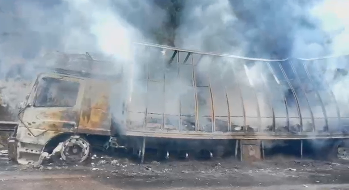 Um vídeo feito pela Polícia Rodoviária Federal (PRF) no Morro dos Cavalos no início da noite desta segunda-feira (5) mostra a situação em que ficou o caminhão que pegou fogo na BR-101. As imagens mostram o veículo totalmente destruído, desde a cabine onde estava o motorista até os pneus e a carreta. Segundo o Corpo de Bombeiros Militar de Santa Catarina (CBMSC), as chamas já foram controladas. e não houve vítimas.