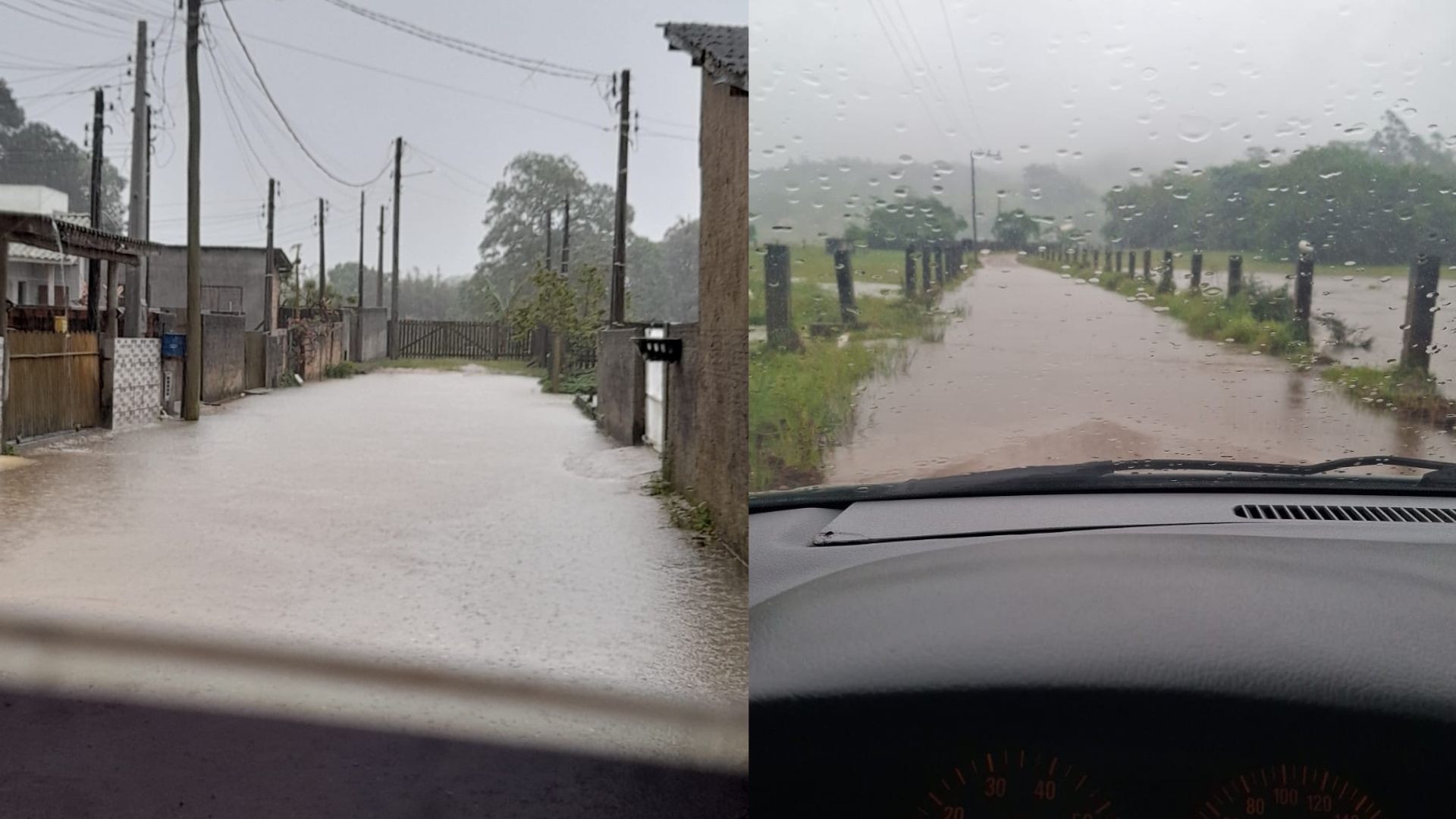 Nas imagens é possível ver que, mesmo em pouco tempo de chuva, as ruas ficaram alagadas em diversos municípios no Sul de Santa Catarina. Segundo a Defesa Civil, Imbituba registrou diversos pontos de alagamento nos bairros de Nova Brasília, Itapirubá e Vila Village, onde cerca de 100 residências foram atingidas. Na cidade de Tubarão, os bairros mais afetados foram Andrino, Oficinas e Vila Moema. O asfalto cedeu em um trecho da Rua dos Ferroviários e causou o bloqueio temporário de um ônibus que passava no local.