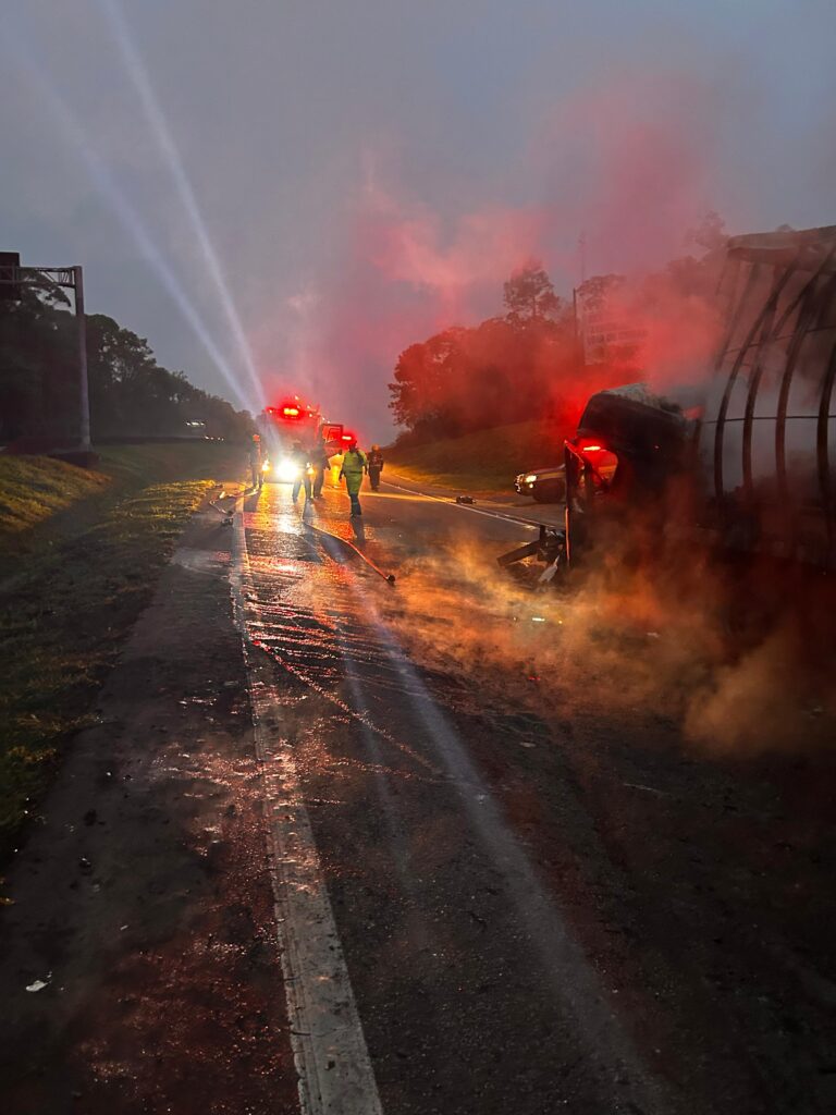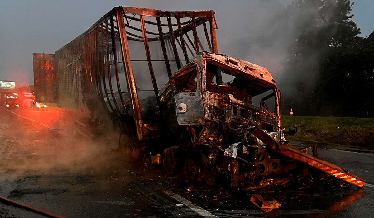 Acidente seguido de incêndio bloqueou completamente a BR-101 por cerca de uma hora