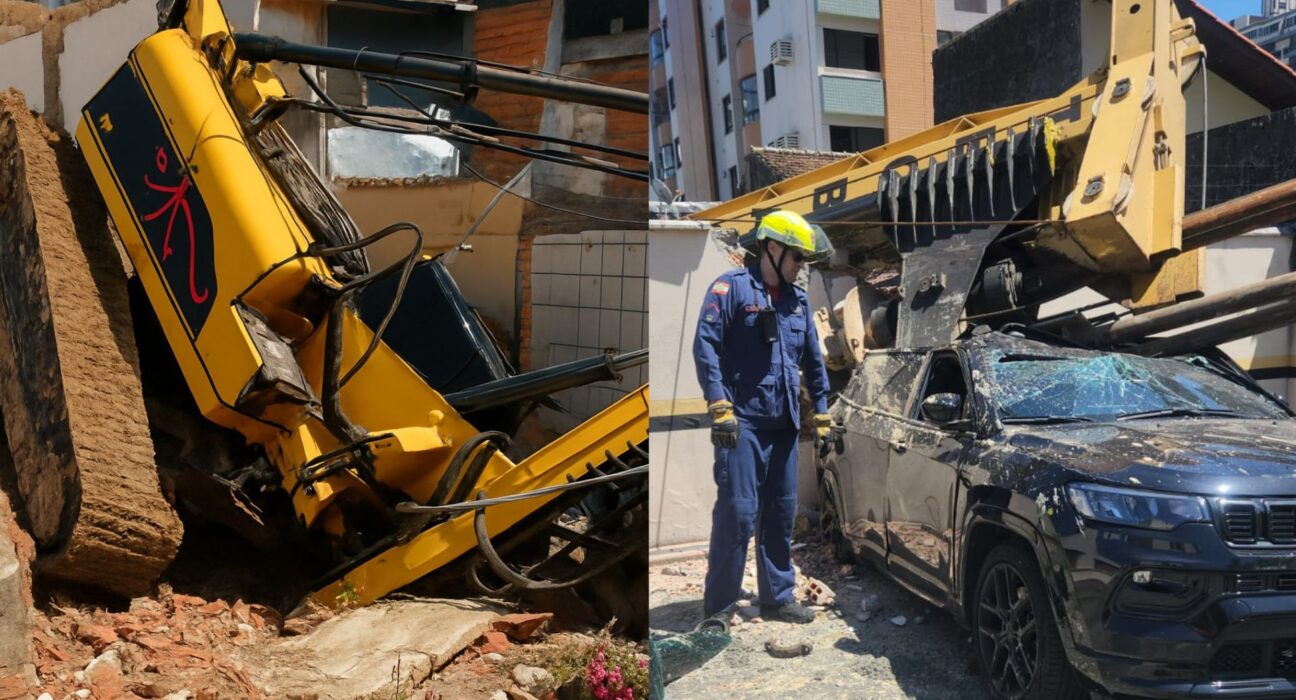 Vídeo: Deslizamento em obra derruba maquinário sobre casas e carro