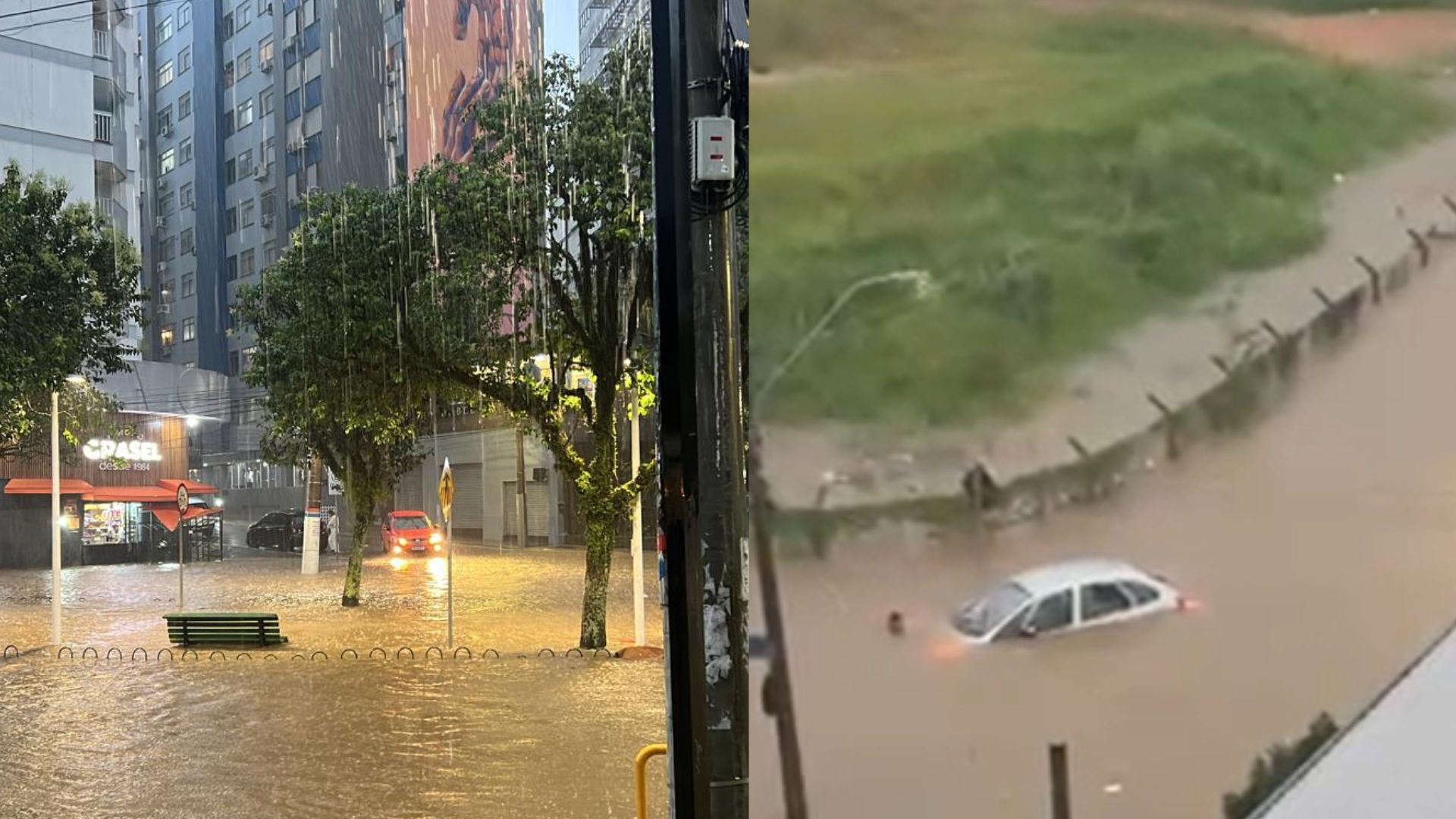 Imagens do sistema de videomonitoramento mostram algumas vias alagadas na Ilha e na região continental. Na Avenida Madre Benvenuta, o sentido centro-bairro está cheio de água e o deslocamento está comprometido. Na Avenida Beira-Mar Norte e na Engenheiro Max de Souza (Coqueiros), nas proximidades do acesso à Ponte Pedro Ivo, o acúmulo de água também é grande. No bairro Coloninha, no cruzamento entre as ruas Coronel Caetano Costa e Edison da Silva Jardim, um carro ficou quase que completamente submerso ao tentar atravessar uma região alagada.