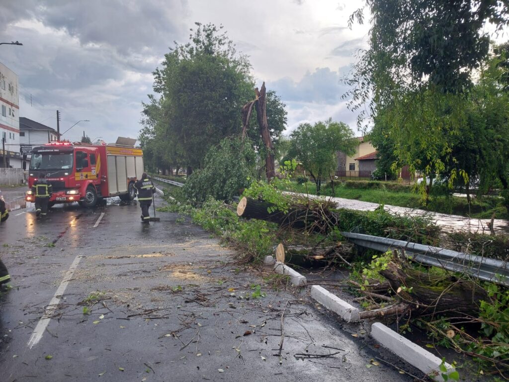 Por volta das 18h15, três árvores de médio porte caíram sobre a Avenida Belizário Ramos, no bairro São Cristóvão, e bloquearam completamente o trânsito de veículos. Quando o Corpo de Bombeiros Militar (CBMSC) chegou no local, foi preciso realizar o corte das árvores, o que levou cerca de duas horas. Ainda no mesmo bairro, as equipes precisaram remover uma outra árvore que havia caído na Rua Ceará, a poucos quilômetros do local. Segundo a corporação, não houve feridos ou danos pela queda das árvores.