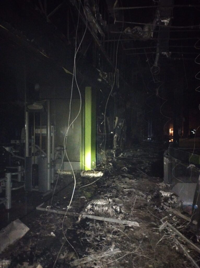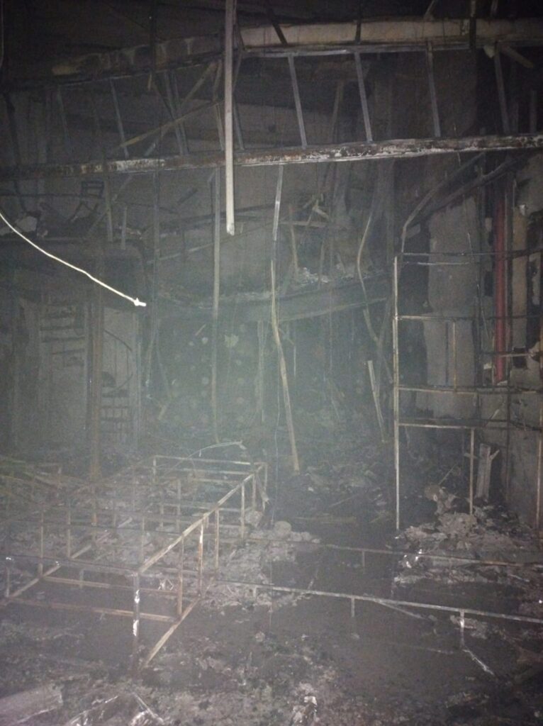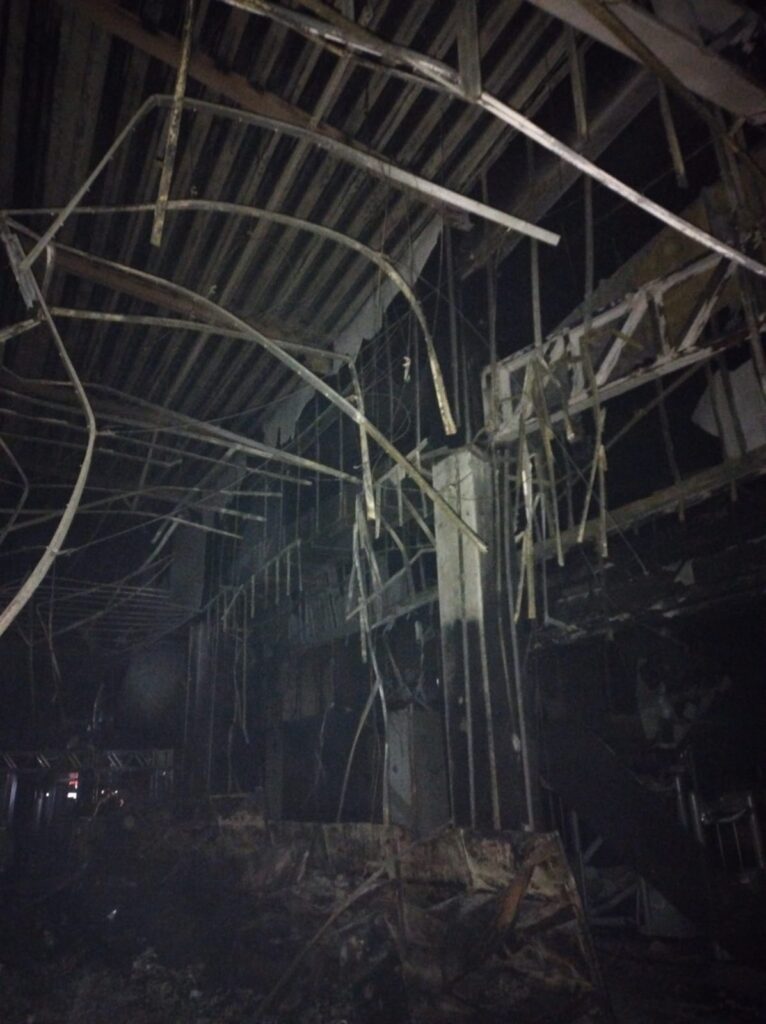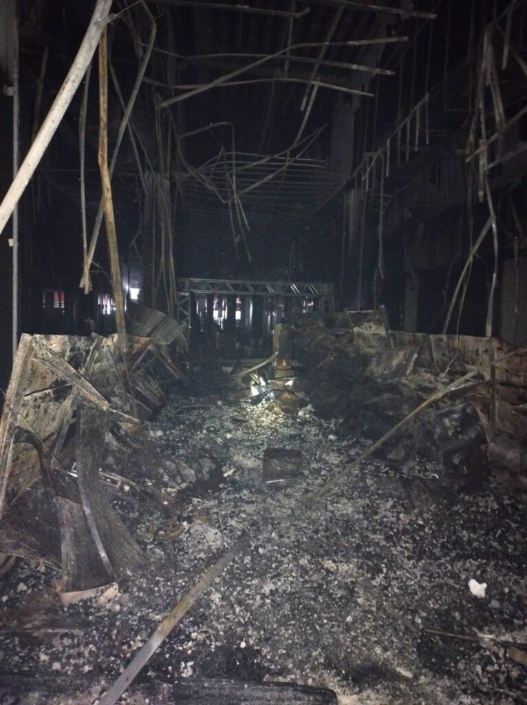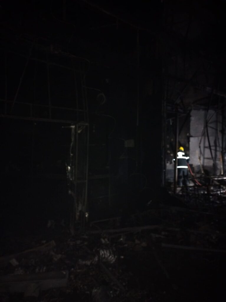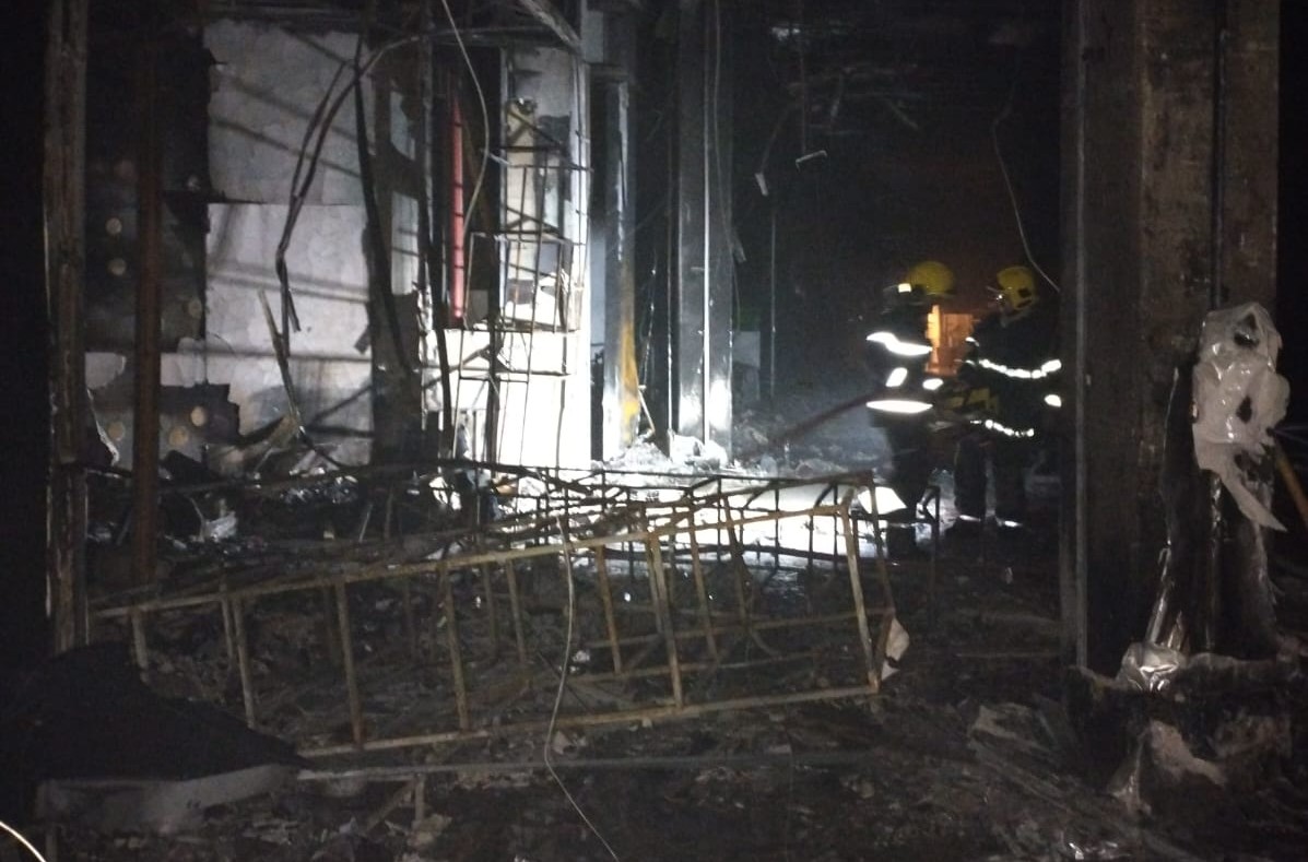 Imagens divulgadas pelos bombeiros mostram a destruição e lojas consumidas pelo fogo