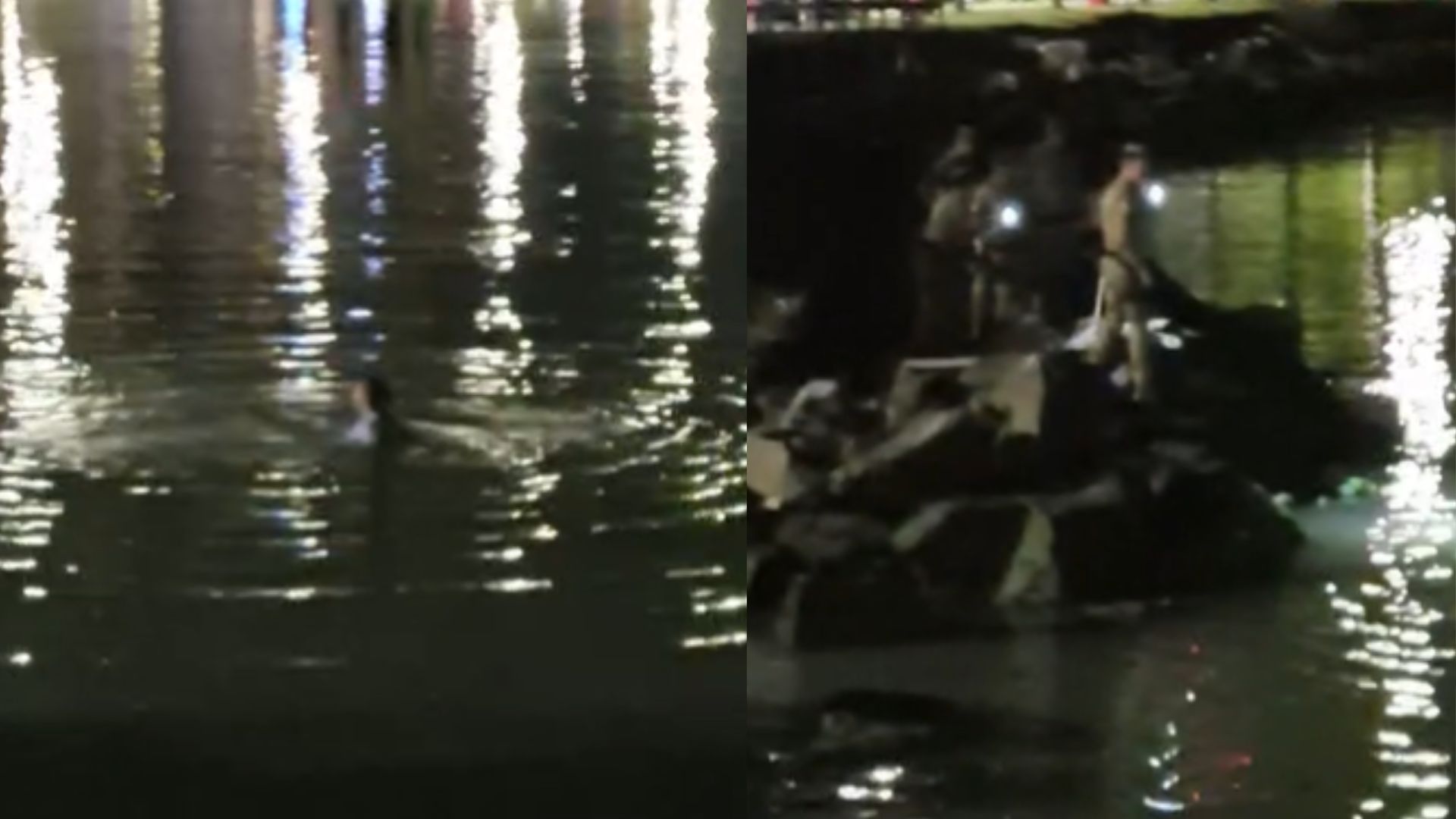 VÍDEO: Mulher mergulha na Beira-Mar durante show e chama atenção policial