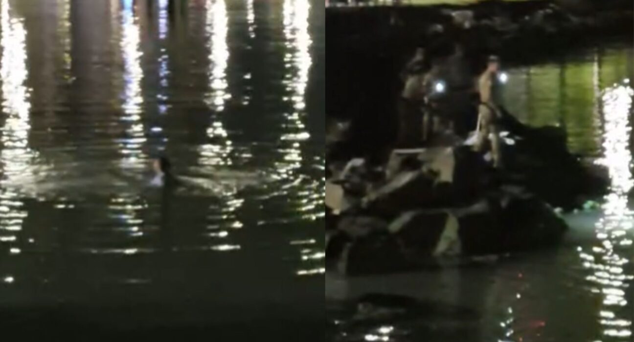 VÍDEO: Mulher mergulha na Beira-Mar durante show e chama atenção policial