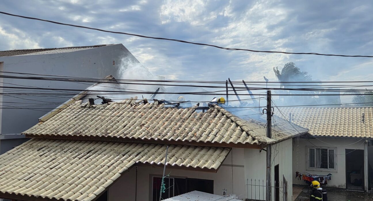 VÍDEO: Telhado de residência em São José cede após incêndio