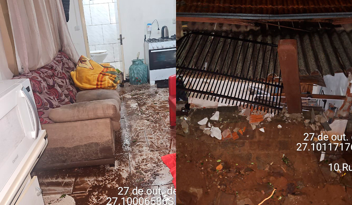 Nas imagens é possível ver que a água das chuvas tomou conta das ruas da cidade e invadiu diversas residências. Um relatório da Defesa Civil do município consta que, no total, 30 residências foram afetadas e quatro pessoas ficaram desalojadas. Além disso, também foram registrados cinco muros destruídos, três pontos de deslizamento de terra e queda de granizo em diversos locais da cidade.