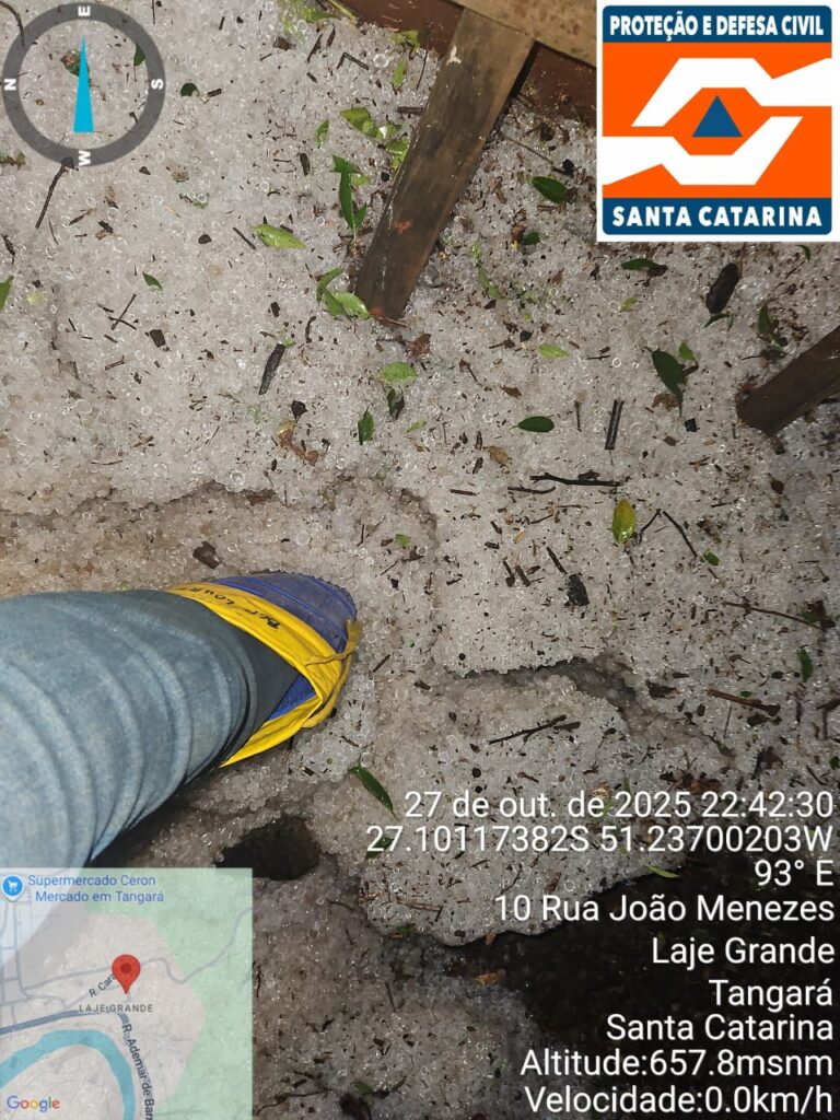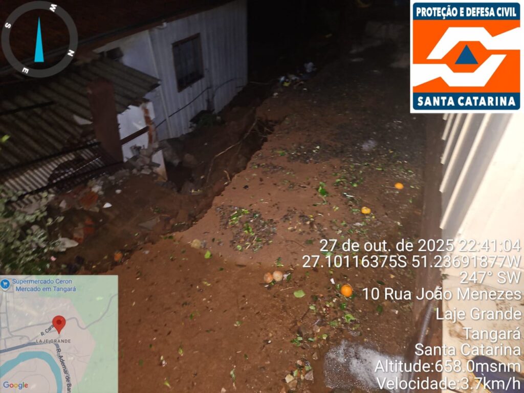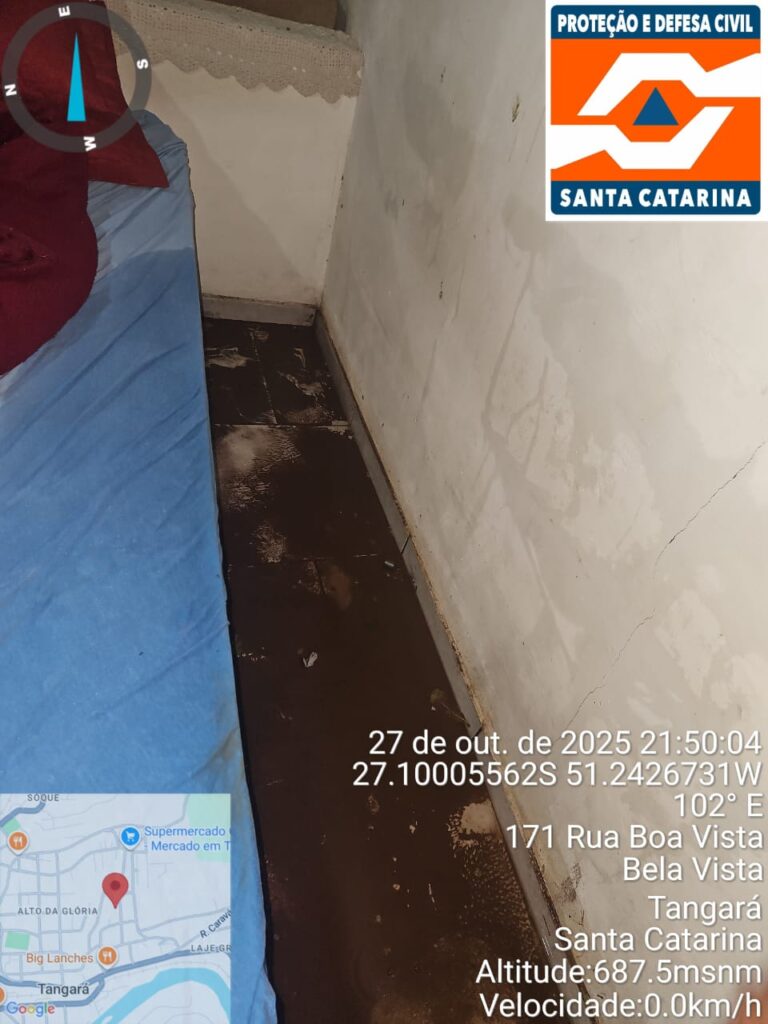 Um forte temporal foi responsável por alagamentos e destruição na noite desta segunda-feira (27) no município de Tangará, no Meio-Oeste de Santa Catarina. Segundo a Defesa Civil, a cidade registrou 70 milímetros de chuva em apenas 20 minutos – valor considerado extremamente alto para o curto espaço de tempo – e fortes ventos.